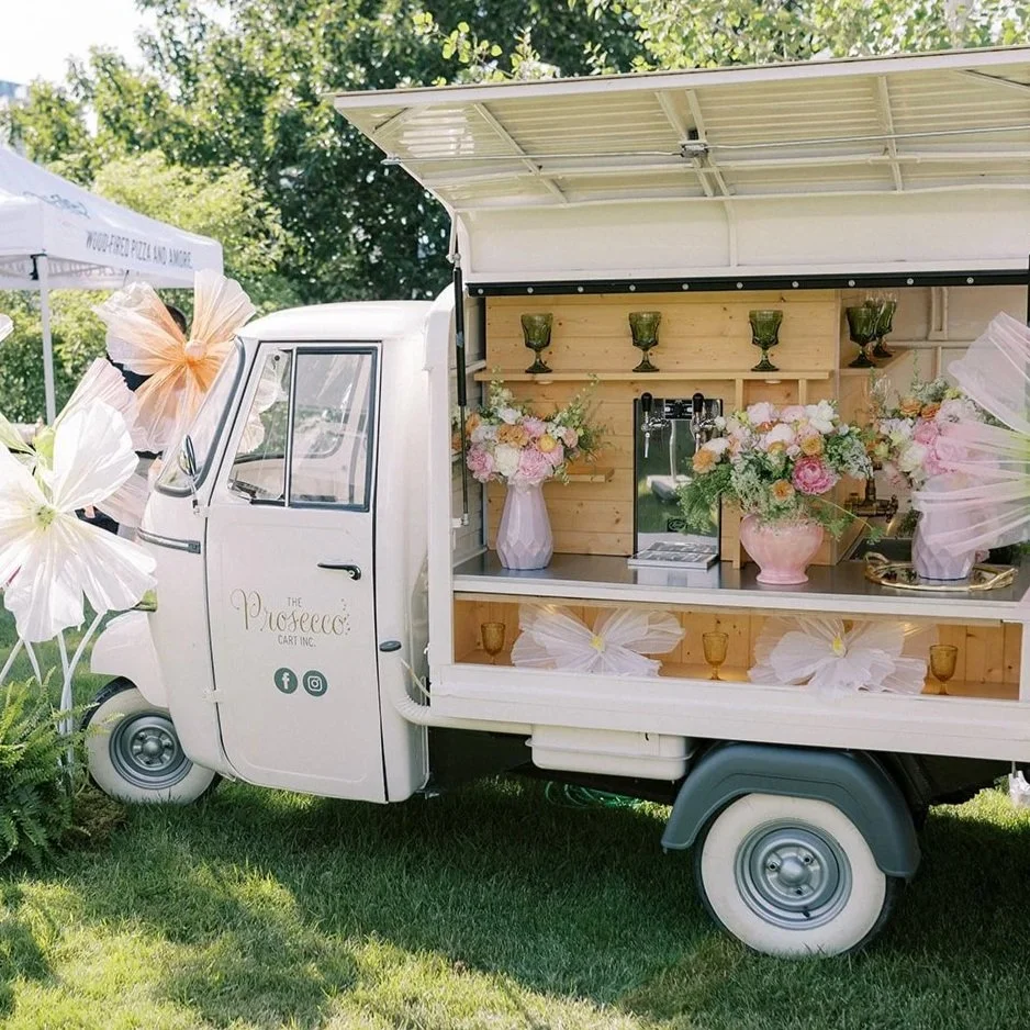 Sip on sparkling rosé libations with The Prosecco Cart, a 1970 Piaggio Ape straight from the streets of Italy that has been transformed into a truly magical mobile bar. Clink flutes and cheers to a fabulous time.